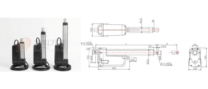 상품 상세설명※ 참고 : 같은 모델의 전동 실린더는 추력과 속도가 반비례합니다. 주의!! 도면을 다운 받아 작도 시 본사에 재고 유무를 필히 확인 하여 주시기 바랍니다. ![]() CWH 50U 제품 특징 ● 고하중 및 공간 효율성 ○ 60 ~ 120 Kg에 달하는 무거운 하중을 안정적으로 밀고 당길 수 있습니다. ○ 크기가 작아 좁은 공간에서의 설치 및 구역 확보에 유리합니다. ● 유, 공압 실린더 대체 ○ 복잡한 펌프, 배관, 밸브가 필요한 유압 및 공압 시스템과 달리 전력으로만 작동합니다. ● 안정성 및 내구성 강화 ○ 리미트 스위치가 내장되어 있습니다. ○ IP66 등급의 생활 방수 및 방진 설계로 습기나 분진이 많은 가혹한 환경에서도 안정적인 구동이 가능합니다. ● 정밀 제어 옵션 (주문 제작 상품) ○ 홀 센서 (Hall Sensor) 또는 포텐셔미터를 옵션으로 장착할 수 있습니다. ○ 여러 개의 실린더를 동기화 시킬 수 있습니다. ○ 외부 Stroke 조절 옵션을 제공합니다. 일반적인 CWH 50U 제품 사용처 ○ 특수 차량 및 다양한 산업 장비에 널리 사용됩니다. ○ 극도로 가혹한 조건에서 고하중을 출력해야 하는 곳에 적합합니다. ○ 리프트 테이블과 같은 경우 4개를 기울어짐 없이 승강 시키는 시스템 ○ 리프트 및 방향 전환 장치, 공작 기계 장착 ● 실린더 부하 무게에 따른 CWH60 모델 속도 비교