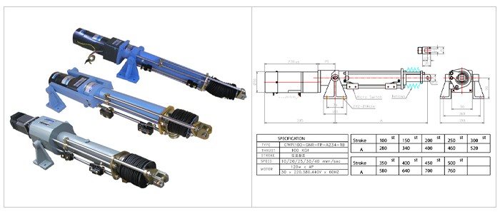 제품의 특징- 소형 초경량 및 100Kg.f 추력- 고정도의 자동화 설비, 주차시스템, 의료기기, 소형운반기기 등 폭넓게 활용- 내부는 그리이스 밀봉형으로 장기간 안정적으로 사용- 유,공압 실린더 대비 유지보수가 간단하며 구성이 간단함