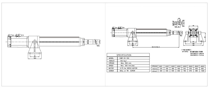CWPiSV150 모델은 최대 1,000Kg.f , 50mm/sec 의 고추력 까지 가능